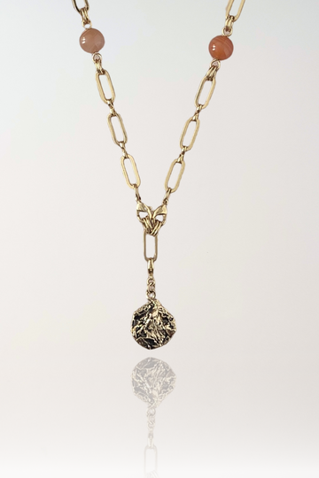 Le collier LÉA, c’est l’alliance entre le raffinement brut de l’agate du Botswana et l’épure d’un design modulable. Pensé pour t’accompagner dans tous tes élans, il se porte de mille façons : seul, en version minimaliste, ou rehaussé du charm ROCK (en option), un pendentif à l'aspect brut, une pièce forte que j’ai dessinée et réaliseé en fonte à cire perdue. Il est en laiton doré et patiné.